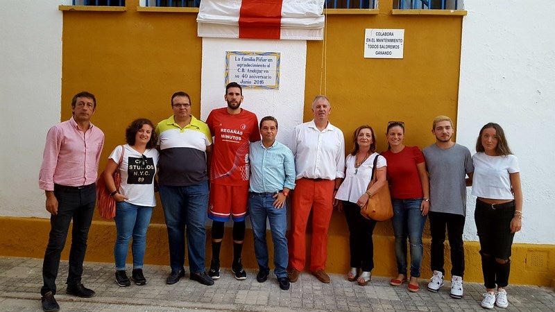 Por otra parte, la familia Piñar, quiso tener un detalle con el club de baloncesto andujareño con la entrega de una plaza que se colocó en las puertas del pabellón y que atestigua los 40 años de trayectoria del equipo. Asistieron el alcalde, Paco Huerta, y el concejal de Deportes, Paco Plaza.