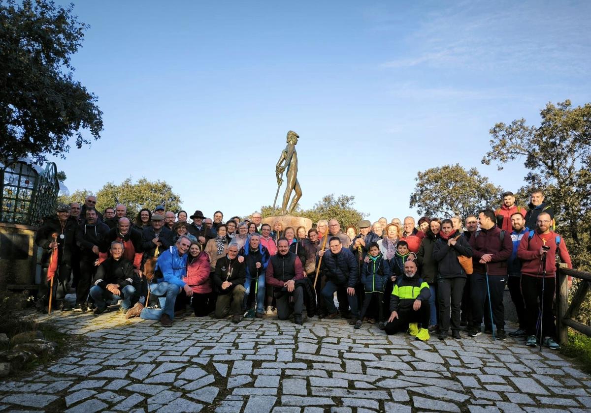 La peña Los Peregrinos celebró el pasado domingo el 30 aniversario del Monumento al Peregrino, popularmente conocido como 'Valentín', porque fue inaugurado el 14 de ... febrero de 1995. El arcipreste de la ciudad, Carlos Moreno, fue el encargado de oficiar la misa conmemorativa en el lugar donde se incrusta la estatua creada por Manuel López, en la zona del 'balconcillo' justo en el enclave donde el caminante avista por primera vez el Santuario, en pleno Camino Viejo, antes del inicio al descenso a Lugar Nuevo. Fueron varios integrantes de la peña y sus familiares los que asistieron a la misa.