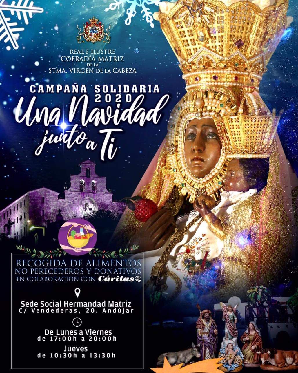 La Real e Ilustre Cofradía Matriz de la Virgen de la Cabeza ha diseñado la campaña solidaria 'Una Navidad Junto a Ti' que consiste ... en una recogida de alimentos no perecederos y donativos para Cáritas en su sede social de la calle Vendederas, de lunes a viernes de cinco a ocho de la tarde y los jueves de 10:30 de la mañana a una y media de la tarde. La Cofradía ha montado su belén. En otros años adquirían un local en un lugar céntrico de la ciudad.