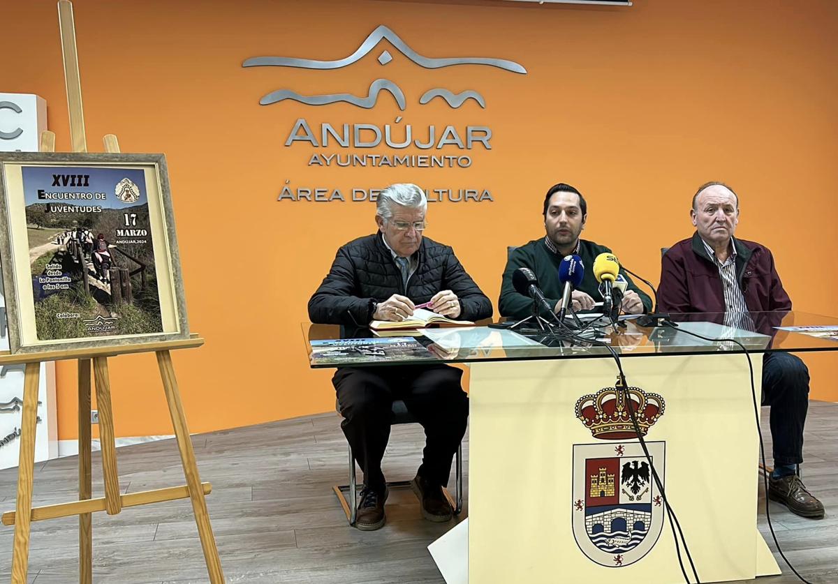 El concejal de Juventud, Emilio Rodríguez, el presidente de la asociación cultural Peregrinos del Alba, Manuel Luna; y su vicepresidente, Julián Pérez, ofrecieron ayer todos ... los detalles en la Casa Municipal de Cultura del XVIII Encuentro de Juventudes con la Patrona de la Diócesis de Jaén, un evento que organiza la Asociación Peregrinos del Alba con la colaboración del Ayuntamiento y para el que se estima que se concentrarán más de 3.000 personas el domingo día 17 de marzo en el Santuario de la Virgen de la Cabeza.