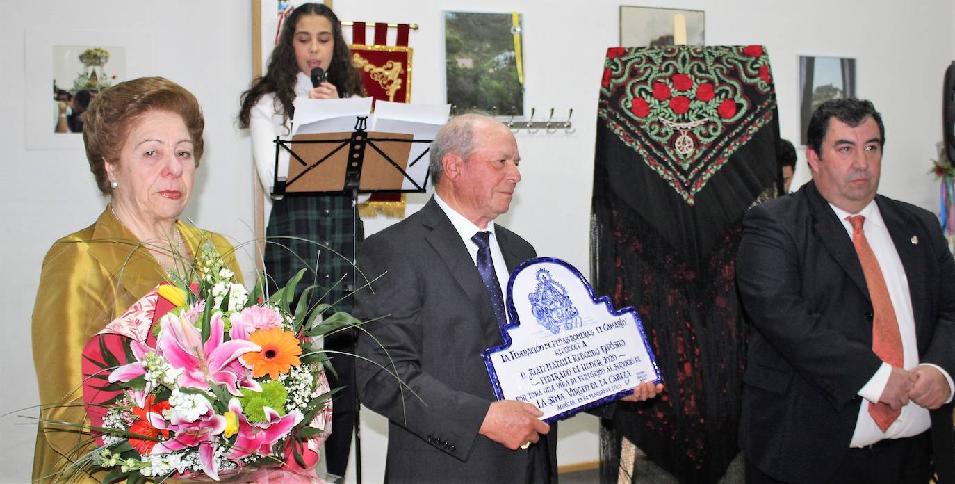 A la nueva sede social y el segundo concurso fotográfico sobre la fiesta que celebrará la Federación el próximo fin de semana en el Santuario, que aborda las costumbres más arraigadas de la Romería, se ha unido este año la creación del galardón y reconocimiento especial de 'Federado de honor' , que se ha otorgado a un gran peñista, romero, cofrade y peregrino, Juan Manuel Redondo Expósito, cuya vida está ligada al viejo Camino de Herradura y se ha convertido en un guía de miles de peregrinos que han atravesado las veredas serranas que conducen hasta el camarín de la Santísima Virgen de la Cabeza. «Pese a sus 80 años no ha existido contratiempo que le impidiera a salir con su mochila a realizar el camino», señaló el presentador, Ángel Fernández.
