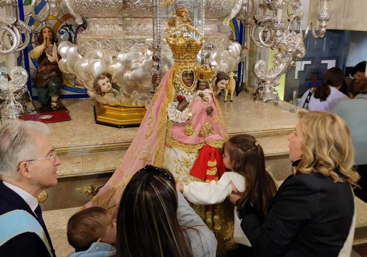 La culminación de la Fiesta de la Candelaria se desarrolló en el camarín, donde la imagen de la Virgen de la Cabeza Virgen se bajó hasta el altar. La hermana mayor, Isabel Moya, fue pasando por el manto de la Virgen a todos los niños asistentes, viviendo momentos de gran emotividad junto a sus padres y familiares que los ofrecieron a la protección de la Santísima Virgen de la Cabeza con goza y fe. El acto se desarrolló en un ambiente distendido, de convivencia, con el objetivo de que los hijos vayan conociendo y palpando la devoción a la Morenita y a la vez pudieran tocar la imagen de la Virgen.