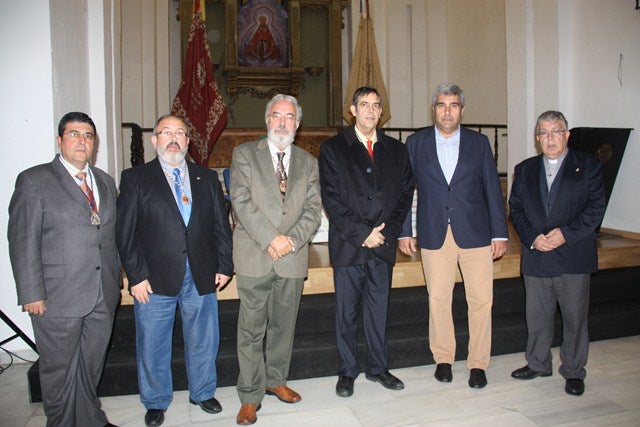 tanto el acto como el conferenciante estuvieron presentados por el coordinador del ciclo y responsable de publicaciones de la Cofradía, Enrique Gómez. En la mesa también se encontraban el presidente y hermano mayor, José Mª Gonzáles y José Carlos Millán, el rector del Santuario, Domingo Conesa, y el concejal de Festejos, Eugenio Martínez.