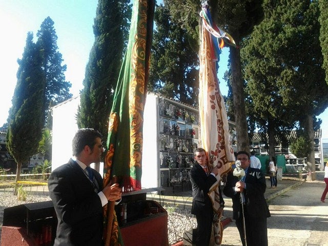 Ya por la tarde, en el Cementerio se volvió a honrar a la memoria de quienes en su día extendieron la devoción por Andújar y hoy se encuentran en la 'romería de los cielos'. El presidente de la empresa que gestiona el Parque-Cementerio, Jerónimo Jiménez, entregó una placa conmemorativa a la Real Cofradía Matriz, en agradecimiento a su visita al 'camposanto'.