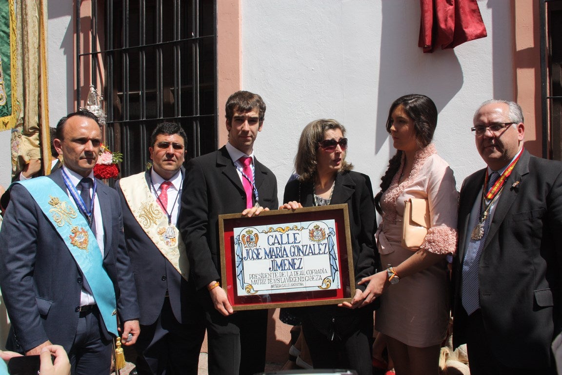 El que fuera presidente de la Real Cofradía Matriz de la Virgen de la Cabeza cuenta con una calle con su nombre. La calle Argentina, lugar en la que fue su residencia junto a su familia, pasa a ser la calle José María González Jiménez. De este modo, se rinde homenaje a su trabajo incansable al frente de la cofradía de modo que su memoria perdurará por siempre a través del callejero de la ciudad que, tal como destacó su hijo en unas emotivas palabras, es un libro vivo de la historia de la ciudad.