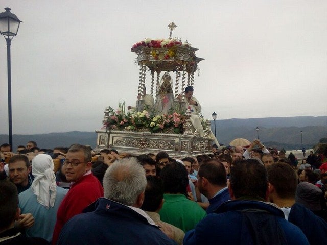 La Morenita ha realizado el recorrido corto sin poder atravesar este año la Ciudad de Las Carretas. A hombros de sus anderos que la portan con ilusión y tremendo esfuerzo ha bajado por la calzada, ha llegado a la plaza y ha emprendido el camino de vuelta a su Basílica por la carretera. La entrada se ha producido pocos minutos después de las 13:30. A pesar de la climatología son numerosos los romeros que han peregrinado hasta el cerro. La climatología adversa los ha sorprendido ya que se esperaba que el mal tiempo hiciera su aparición por la tarde.