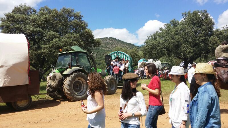 Con familiares y amigos o agrupados en peñas los romeros abandonan ya el Lugar Nuevo. Las primeras en dejar este paraje han sido las ... carretas seguidas de las caballerías y por último serán los romeros en sus vehículos.