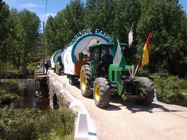 Las carretas se mezclan con familias que, reunidas en este paraje natural, disfrutan de un ambiente festivo. Los vehículos han accedido por la carretera que ... une Andújar con el Santuario.