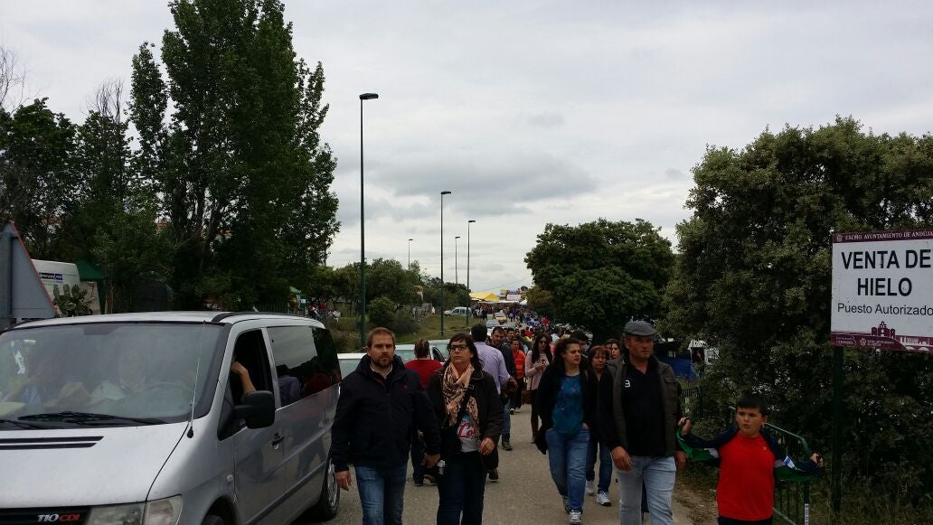 Los vehículos que han salido a primera hora de la tarde de Lugar Nuevo se encuentran ya llegando al Santuario. En su Basílica se encuentra ... La Morenita. Durante toda la noche los peregrinos la visitarán en su camarín para mañana volverla a saludar durante la procesión en la mañana de Domingo de Romería.