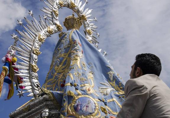 Una noche solemne en el Santuario precedió a una fría e intensa mañana en lo meteorológico, pero intensa y candente en lo romero, porque un reguero incesante de devotos y romeros venidos de todas partes remontaron las calzadas sacrales para ver la exultante salida de 'La Morenita' por el dintel del templo o para presenciar la Misa, mientras se formaban las cofradías.