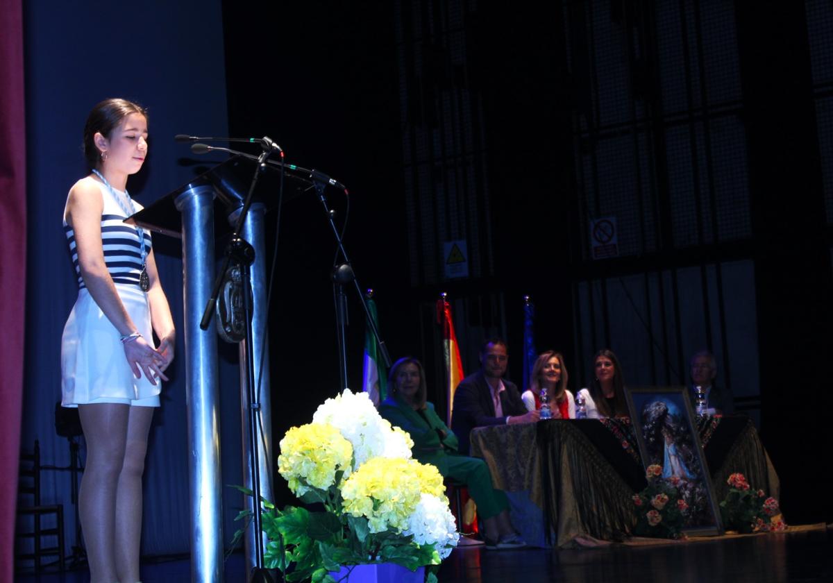 La alumma de 6º de Primaria del colegio San Bartolomé, María Bellido, fue la pregonera de la presente edición. Logró emocionar a los asistentes con su descripción de minuciosa de todas las actividades que se viven desde las primeras banderas hasta la procesión el último domingo de abril en el cerro, con un discurso pasional y enfervorizado con una dedicatoria especial a su abuelo Luis, fallecido hace poco.