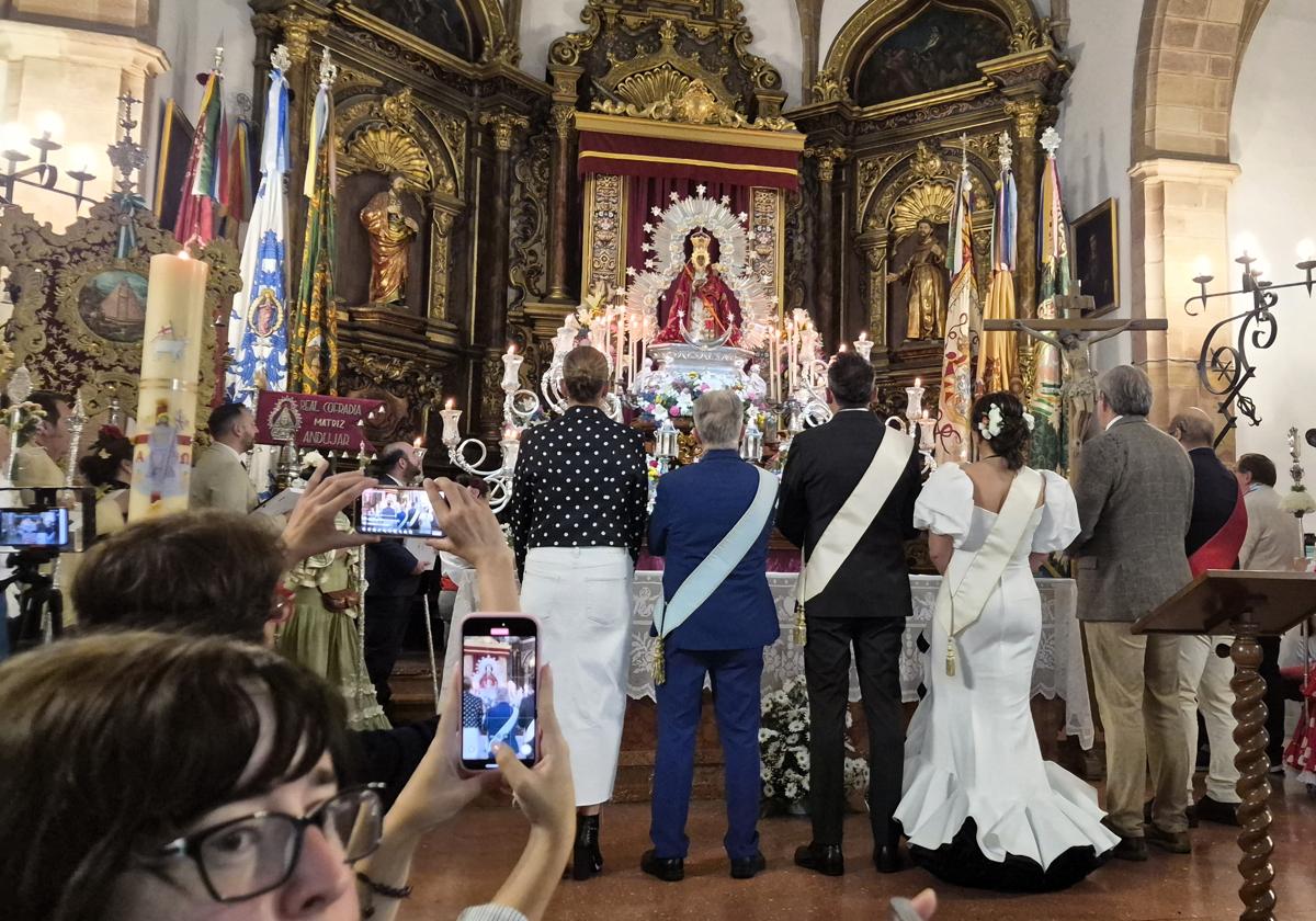 Elocuente fue el discurso del alcalde de Andújar, Francisco Carmona, quien hizo un alegato en defensa del Viernes de Romería tradicional, con la recibimiento a las cofradías por las calles de la ciudad. Una salve prologó la celebración de la eucaristía, presidida por el arcipreste, Carlos Moreno. Después se ha producido una confraternización de las cofradías en Santa Marina, donde tiene lugar la exposición de azulejería sobre la romería.