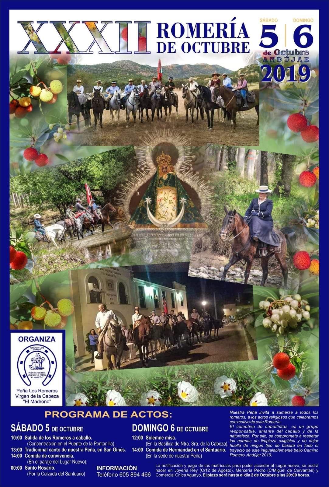 Los ... actos arrancarán el sábado día 5 de octubre, a las 10 de la mañana, con la salida de los romeros a caballo desde la zona de La Pontanilla para iniciar la peregrinación, donde habrá canto en San Ginés y comida en Lugar Nuevo. A las 12 de la medianoche, se rezará el rosario en las calzadas del Santuario.