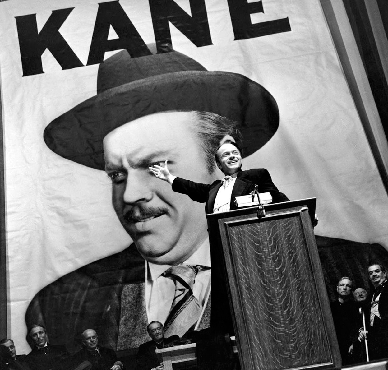 Se atreve todavía a augurar Borges que el debut de Orson Welles sólo habría de perdurar «como film cuyo valor histórico nadie niega, pero nadie se atreve a rever». Pero lo cierto es que Ciudadano Kane –como afirmara Truffaut— «es la película que ha inspirado más vocaciones cinematográficas en todo el mundo»; y me atrevería a añadir que también cinéfilas. No entraremos aquí, por pudor, a detallar su argumento, para no fatigar al lector. El talento exuberante y megalómano de Welles trasplanta técnicas de indagación periodística a la narrativa cinematográfica, al modo de un reportaje cinematográfico donde el flash-back y la entrevista, la planificación barroca y el noticiario se dan la mano. Por primera vez en la historia del cine, en Ciudadano Kane se usan lentes en los planos generales que permiten crear una sensación de 'profundidad de campo', manteniendo enfocado con igual nitidez tanto lo que está en primer como en último plano. De este modo, Welles sustituye el habitual travelling por panorámicas de alto sentido dramático, que además le permiten hacer tomas más largas sin fragmentar la acción.